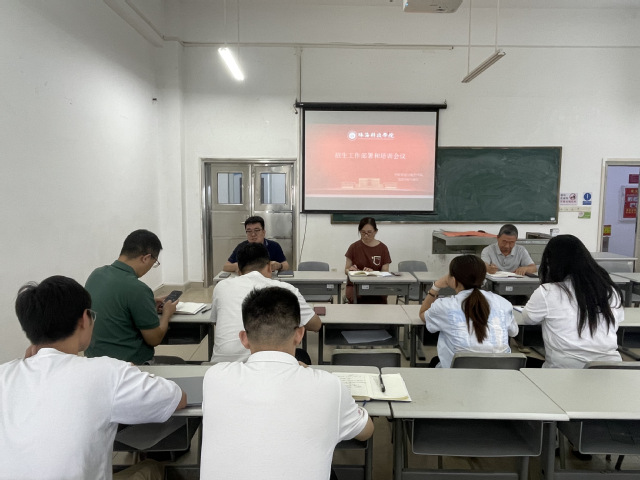 首先,学院学工办主任王鹏老师(兼学院招生联络员)及时向本院招生宣传工作组老师们传达了学校2025 年招生宣传工作部署会的会议精神及具体要求。其中包括联系中学进展汇报、明确并落实所负责地市招生咨询会的落实情况,同时督促尽快、全面检查并更新学院网站内容,确保招生核心信息准确、详实、富有吸引力,以及外出招生所需宣传材料的领取、分配及寄送情况等。此外,还安排了对招生宣传工作组老师的专项培训,培训内容涵盖招生政策解读、沟通能力增强以及应急情况处理等方面,旨在提高老师们招生宣传工作的专业素养和实践能力,更好地完成 2025 年招生宣传任务。