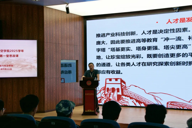 为引导学生坚定理想信念,厚植家国情怀,9月26日上午10点40分,智能制造与航空学院于一教B108开展2025年秋季学期思政第一课,为智航学子们带来了一场思想与精神的双重洗礼。