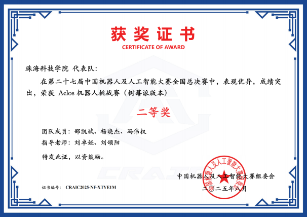 近日,智航学子首次参加第二十七届中国机器人与人工智能大赛,在省级赛段脱颖而出后,代表学校征战全国赛场。面对来自全国各地的顶尖对手,一路过关斩将,斩获国家级一等奖1 项、二等奖1 项,省级一等奖1 项、二等奖1 项、三等奖3 项。